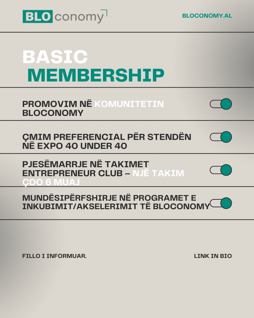 - Mundësi pjesëmarrjeje në programet e inkubimit/aksellerimit që BLOconomy ofron për sipërmarrësit e kësaj pakete
