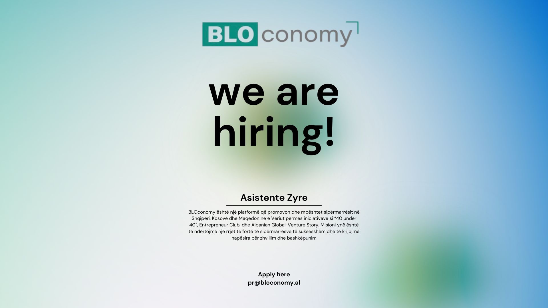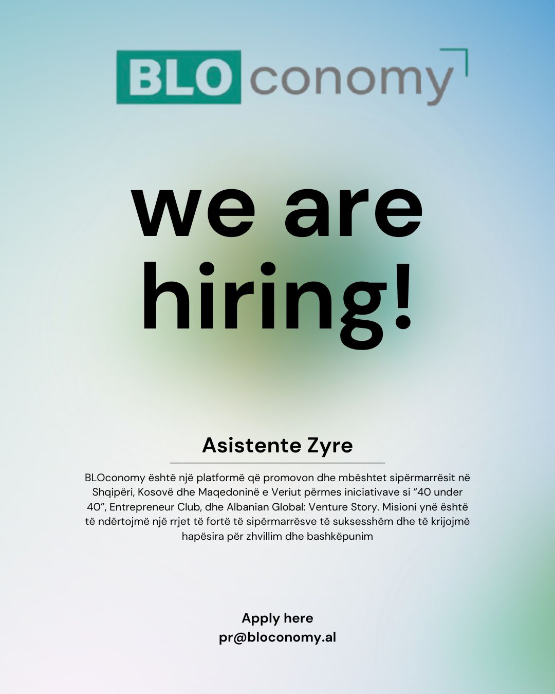 📩 Të interesuarit mund të dërgojnë CV-në dhe një letër motivimi në: pr@bloconomy.al